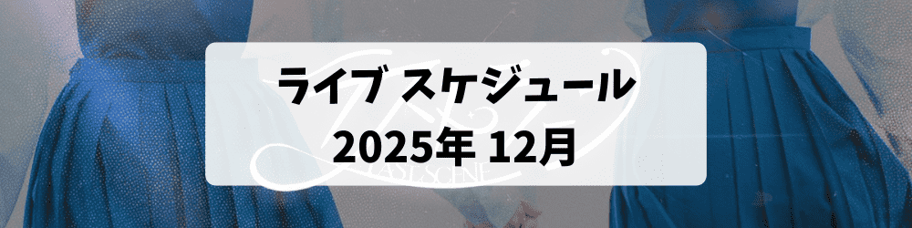 ライブ スケジュール 2025年12月 2025 12/18 広告 24 『HEROINES Xmas Day1』 Kanadevia Hall 25 『HEROINES Xmas Day2』 anadevia Hall 31 『HEROINES COUNTDOWN 2025-2026』 Kanadevia Hall LIVE